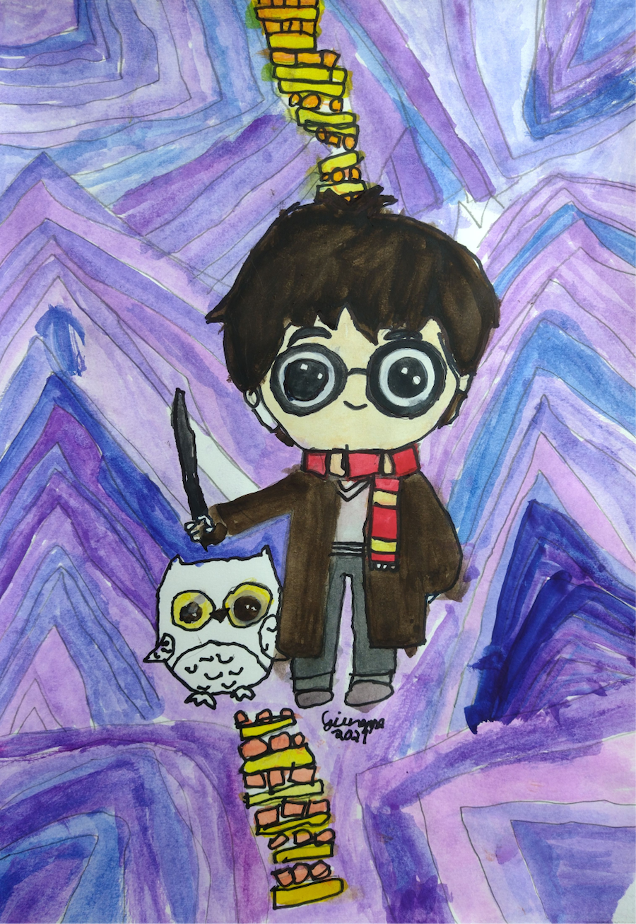 Além de Desenho, estuda Inglês e pratica Vôlei.